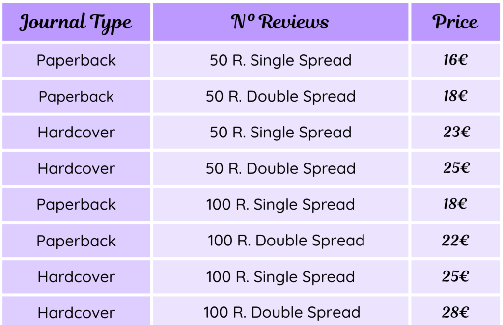 You can choose between paperback/hardcover , 50/100 reviews and single/double spread pages.