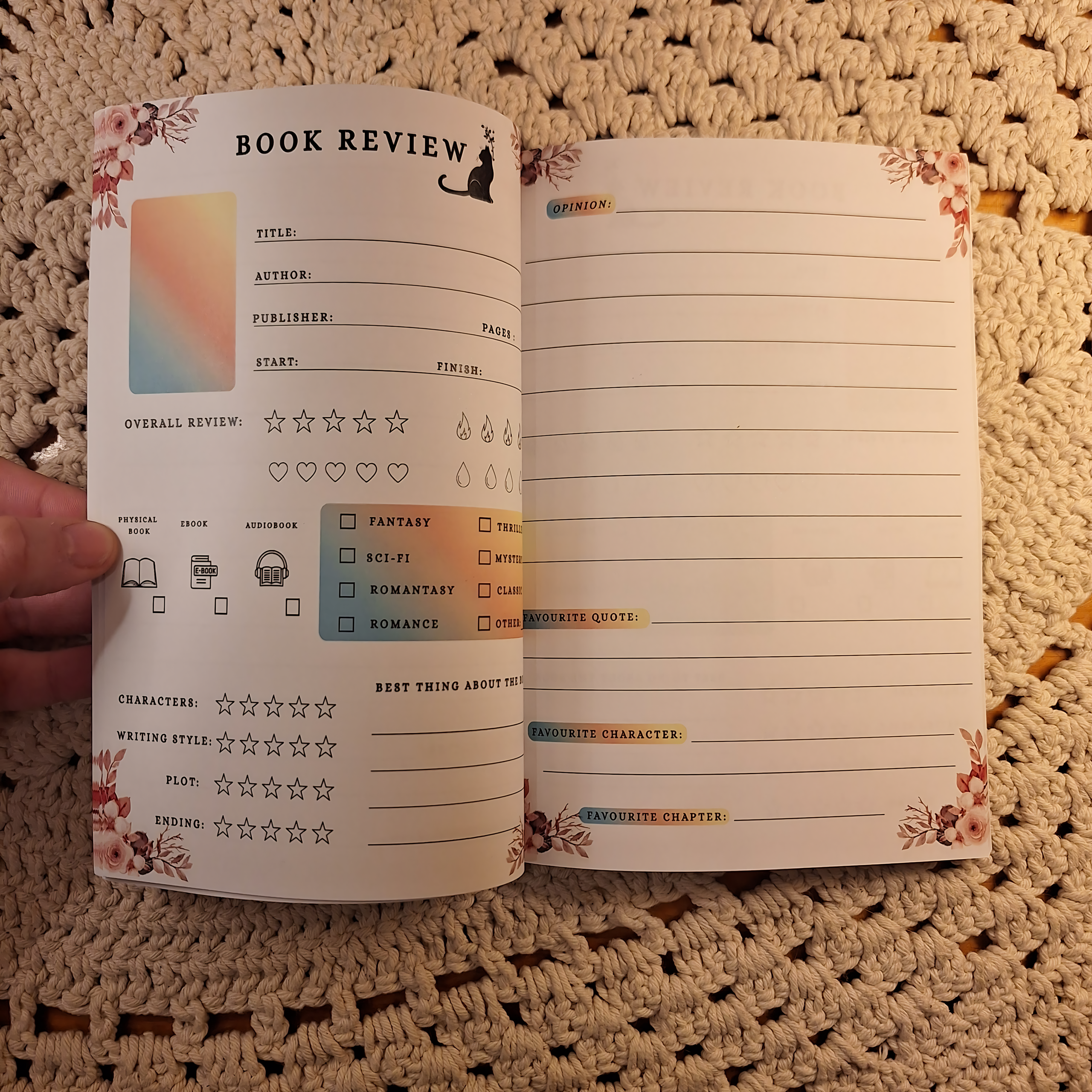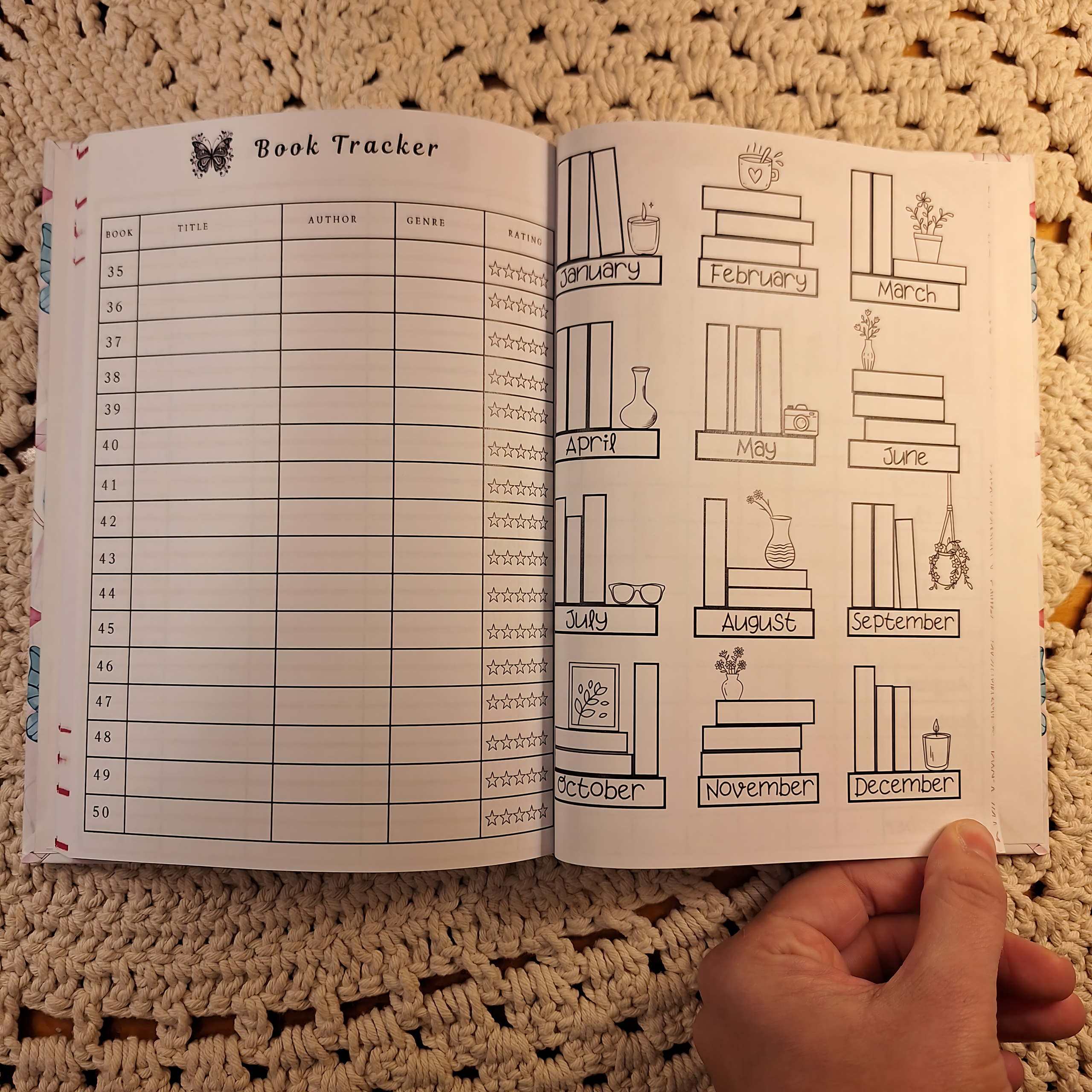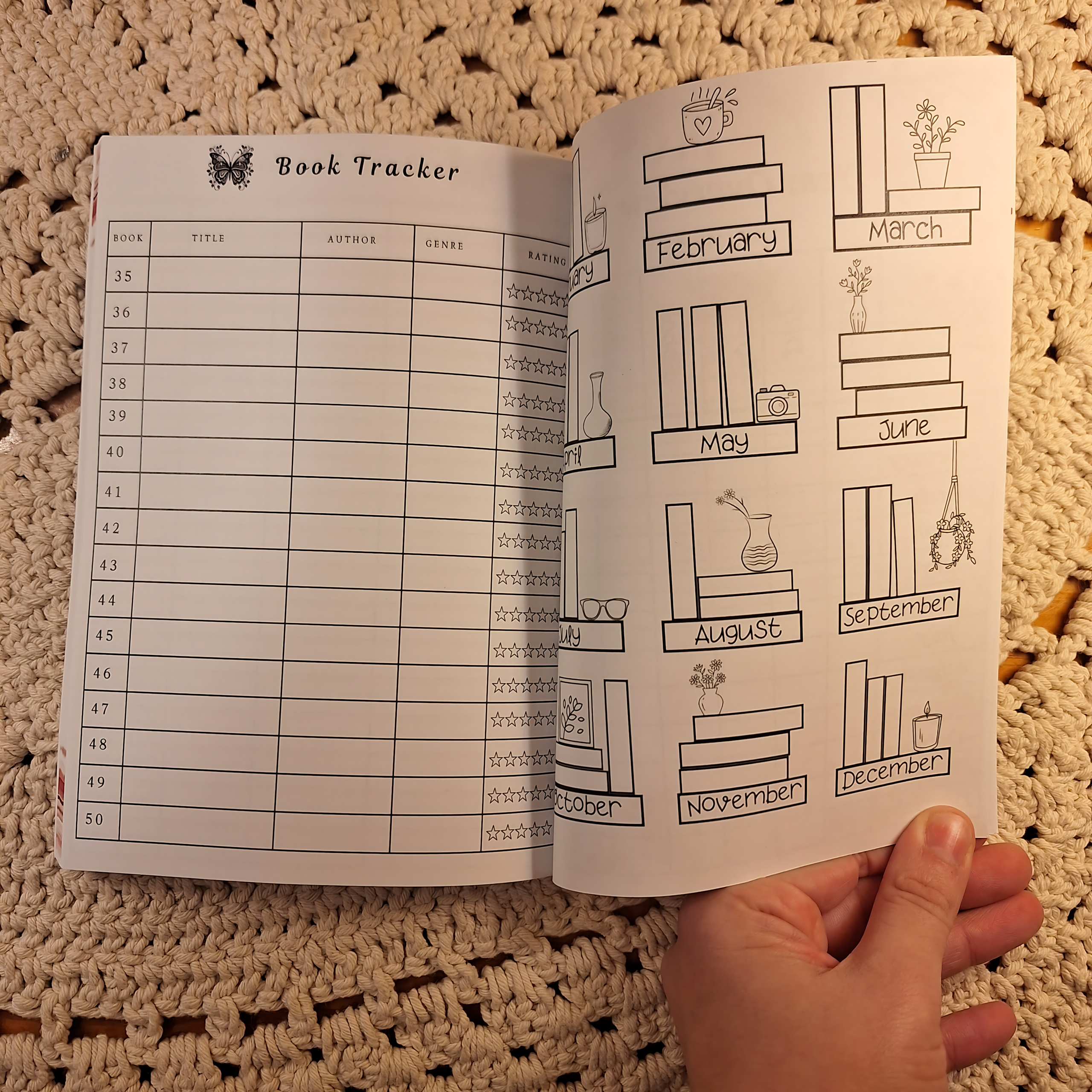 📝 50 cozy review spreads (double-page each) + lovely extras( year overview, top 5 , book tracker list, daily reading tracker,notes etc.)